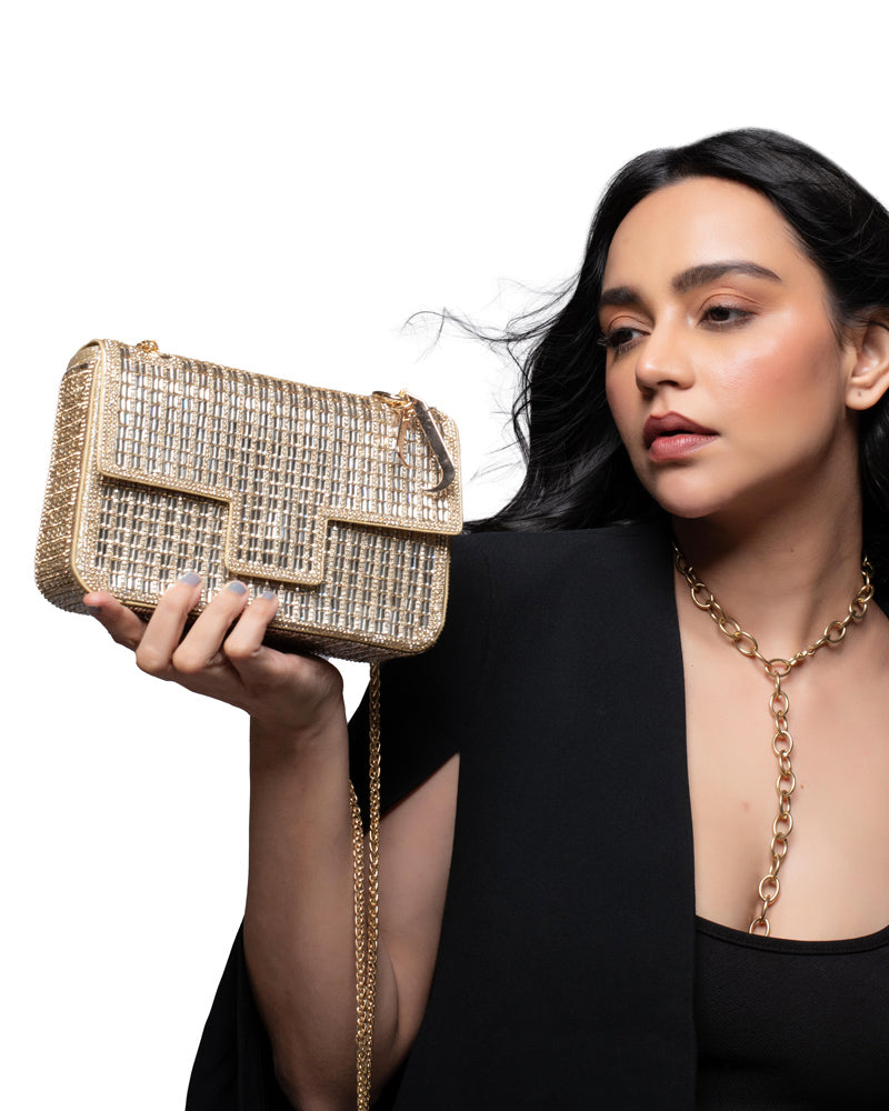 True brilliance with our Beaded Brilliance Bag, meticulously crafted with a stunning textured finish that catches every light.