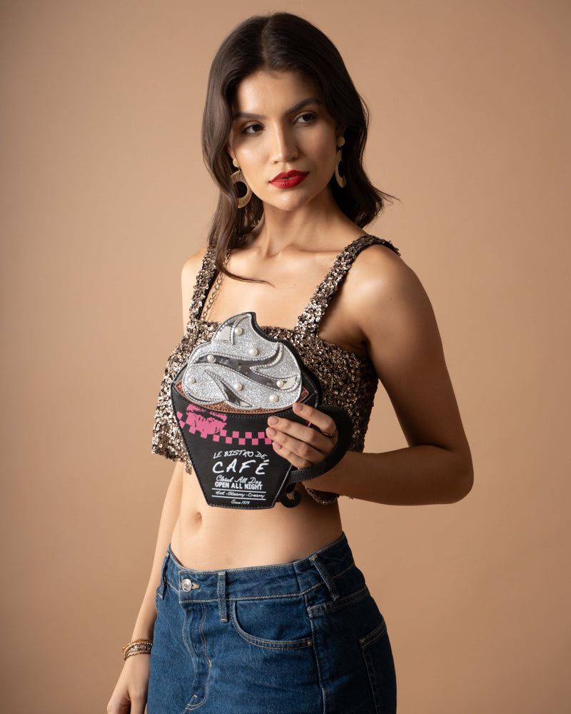 Wake up your wardrobe with the Caffeinated Brew Bag, a whimsical tribute to your daily dose. Its distinctive coffee pot design, adorned with elegant pearls, promises to add a jolt of chic to any ensemble. A must-have for those who love their coffee as much as their unique accessories.