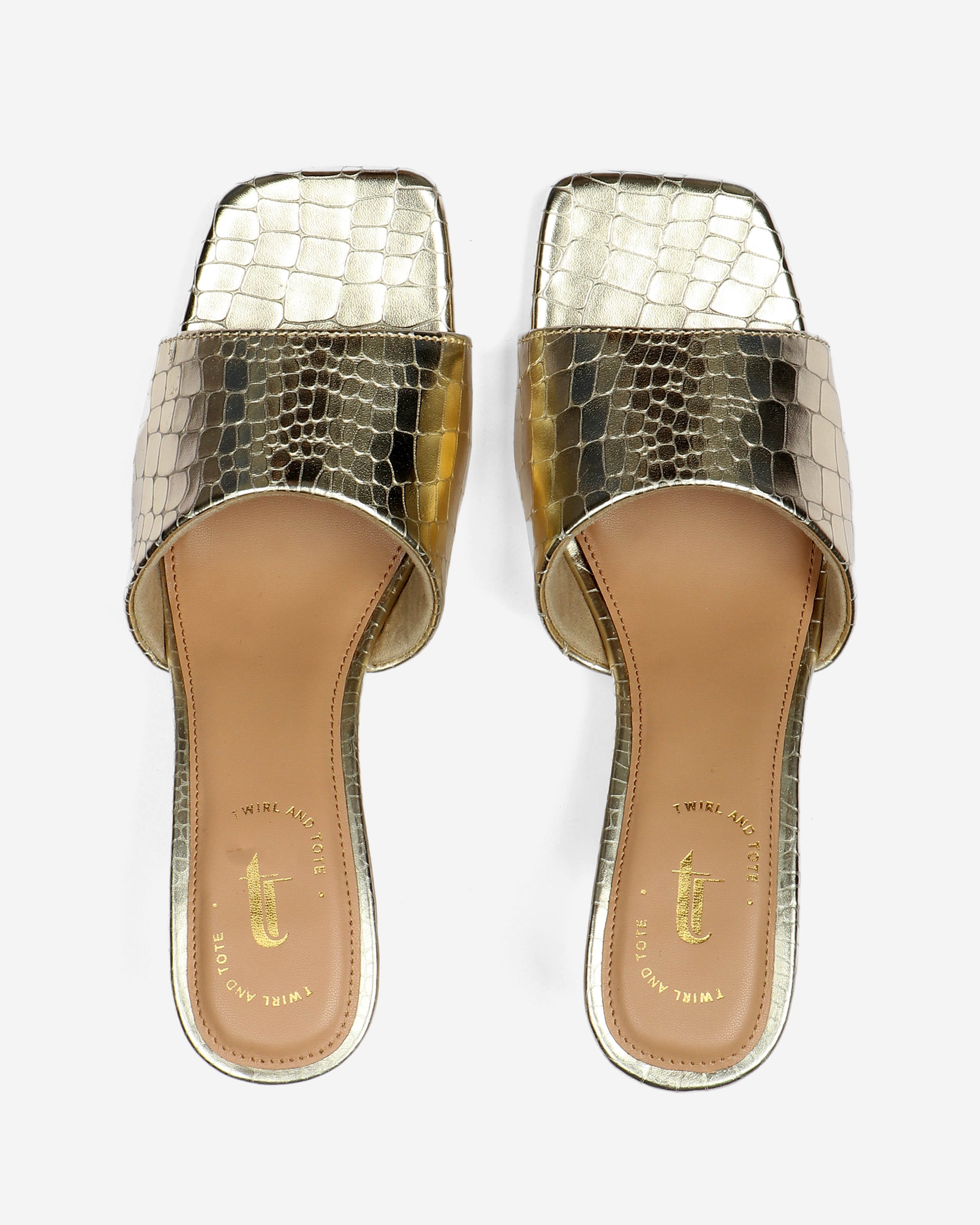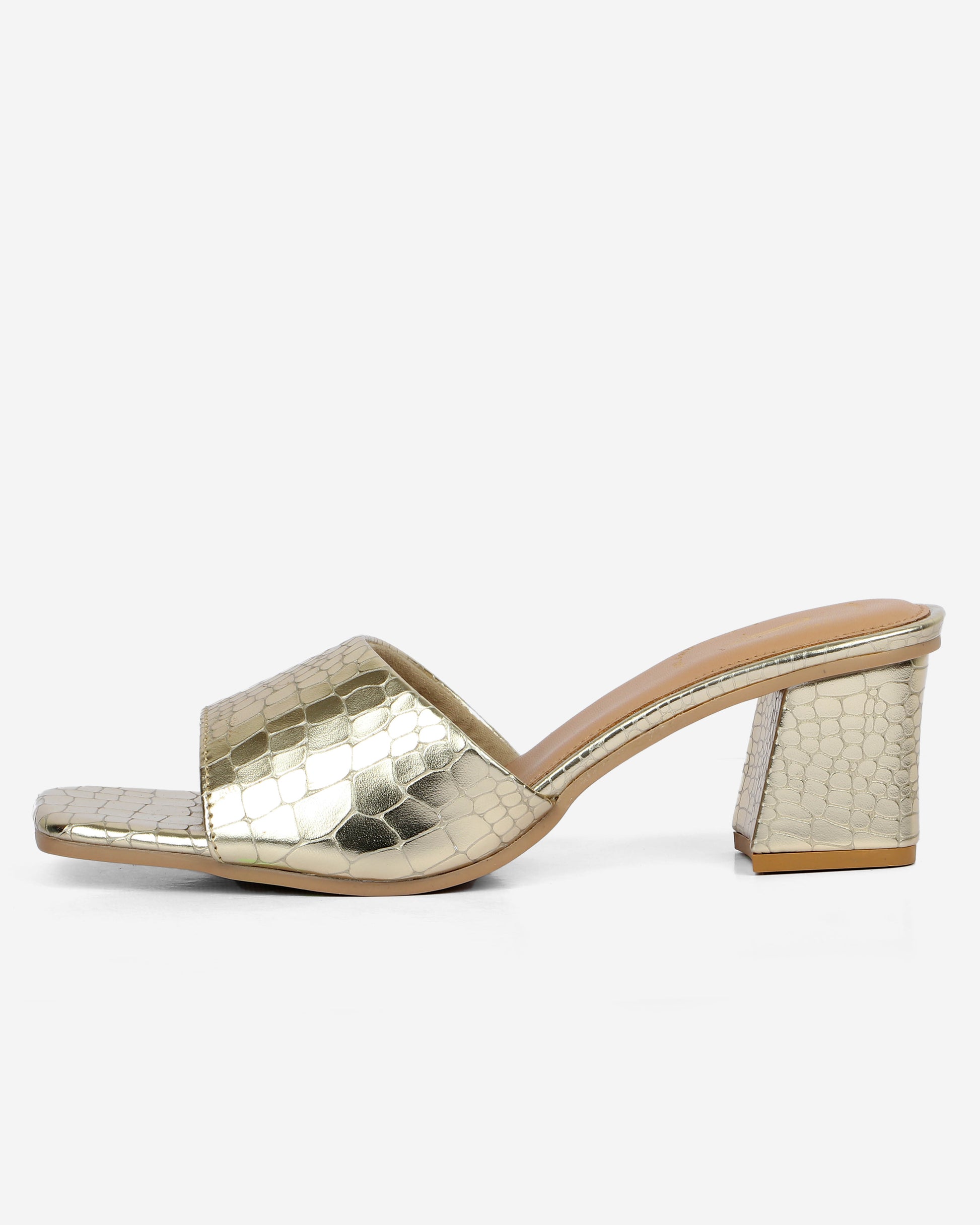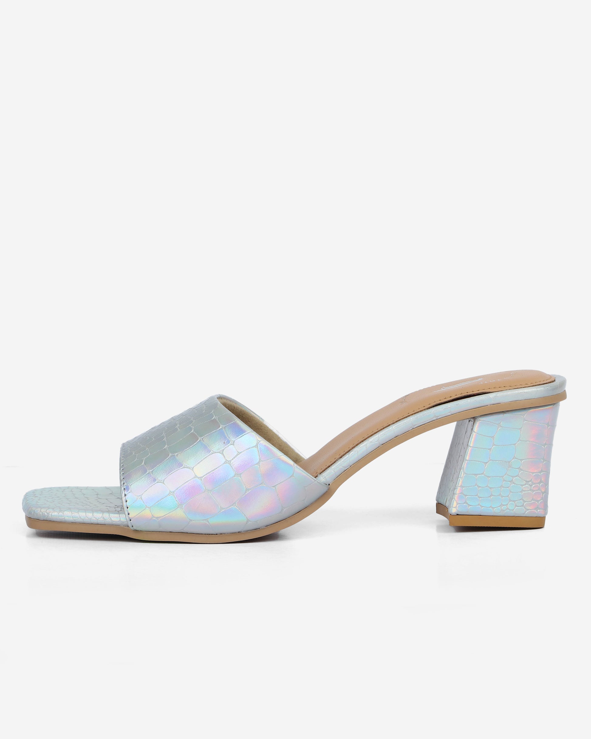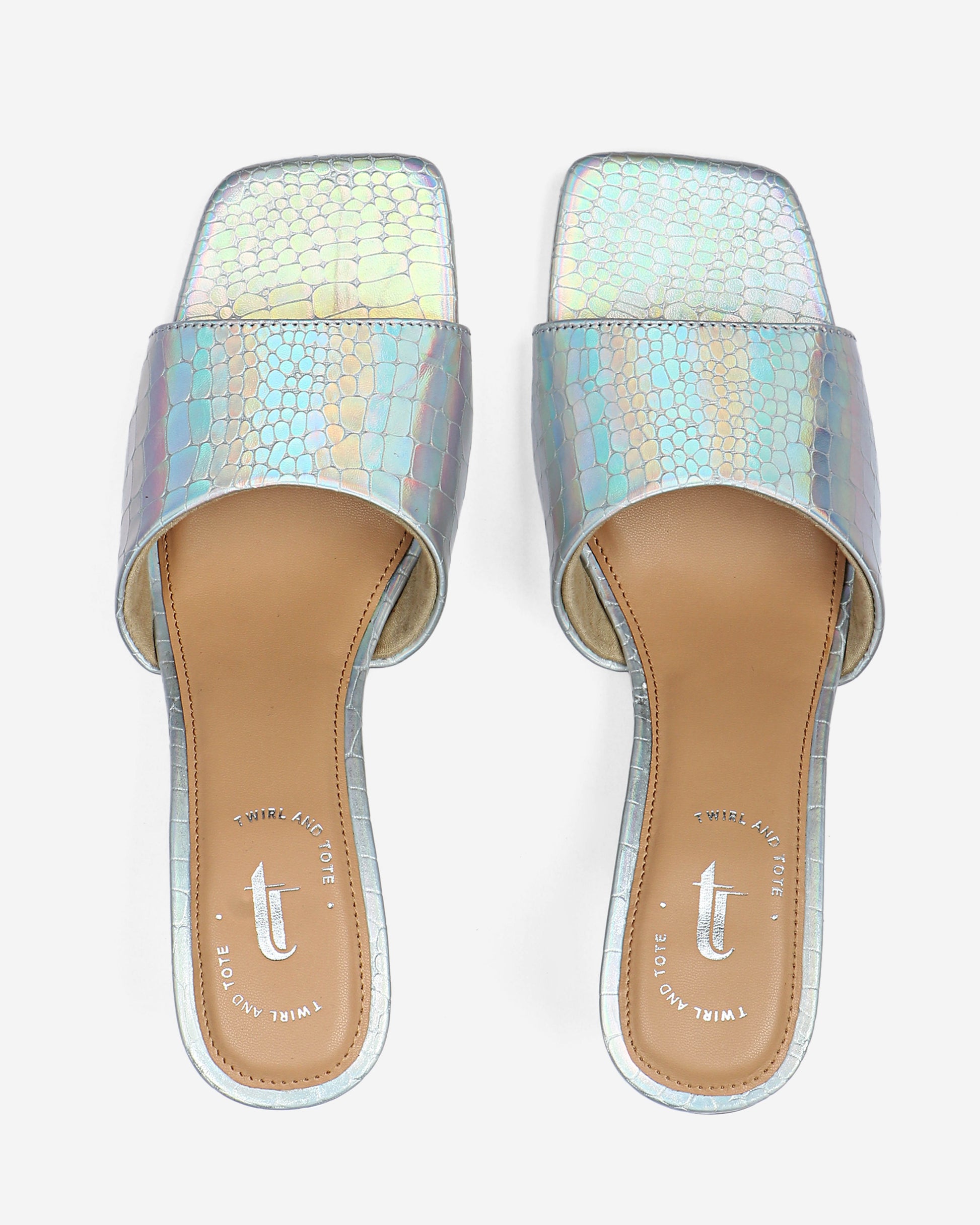 Embrace a touch of glamour with 'Crimson Chic', the perfect mules for a statement look, featuring a lustrous metallic finish.