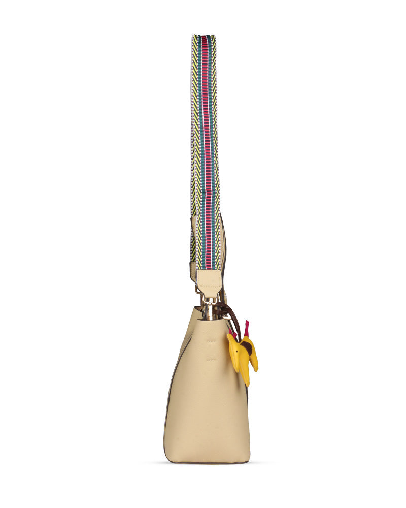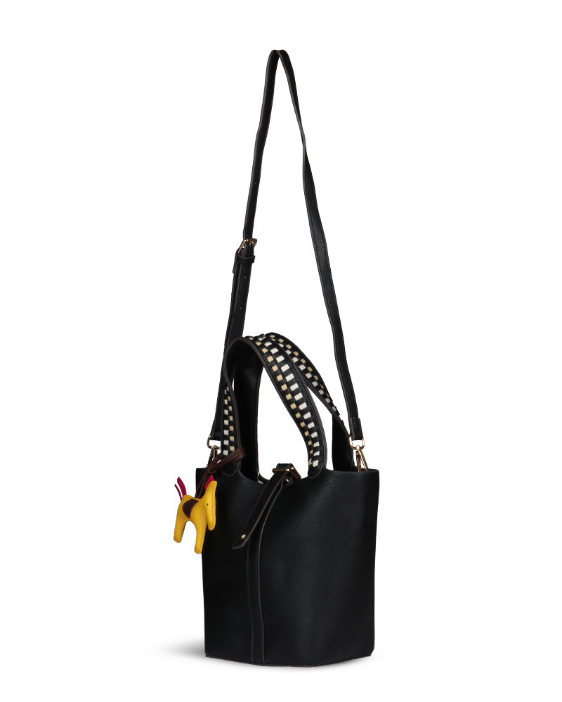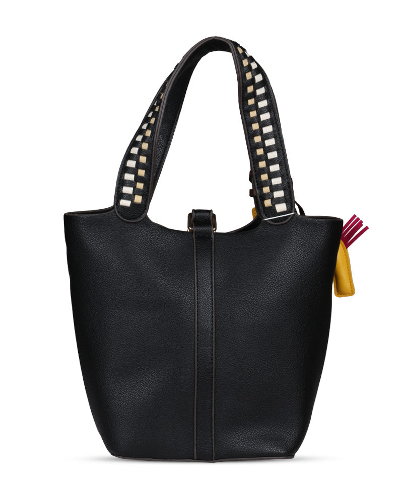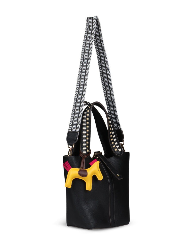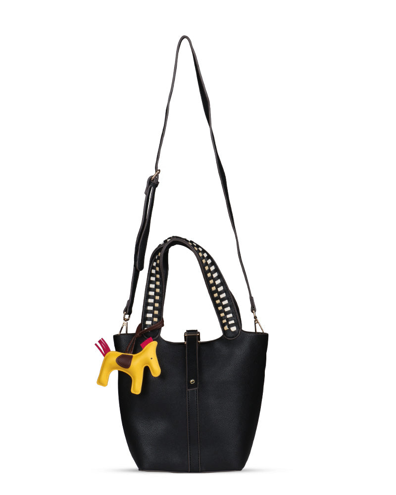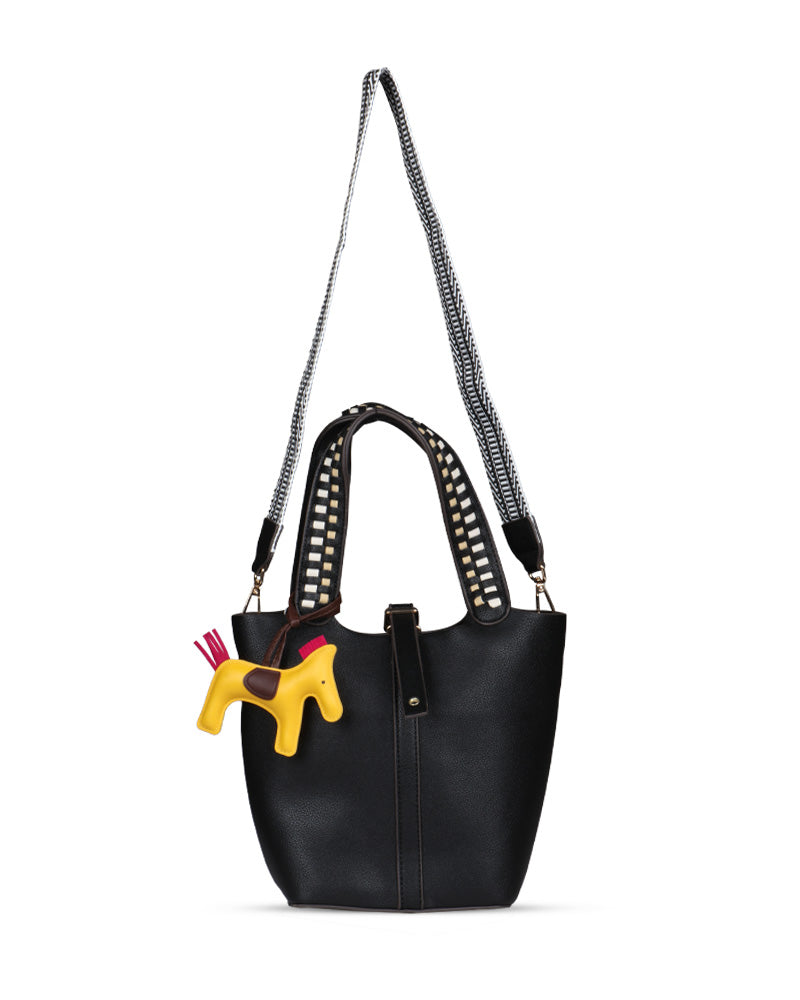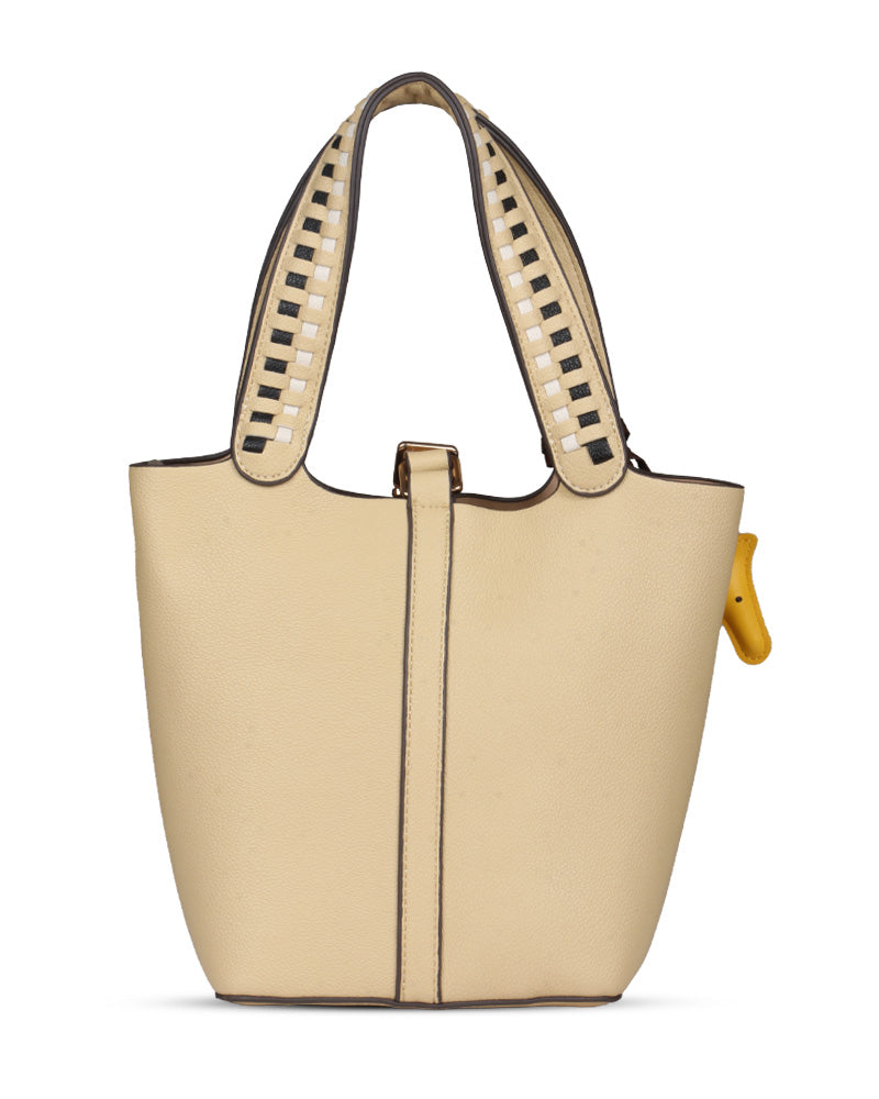 The Desert Ladder Bag is your go-to for contemporary elegance, boasting a luxurious pebbled finish and bold, contrasting woven handles. This versatile carryall is often seen adorned with a playful charm or scarf, making it effortlessly customizable. It's the ultimate accessory for the fashion-forward individual