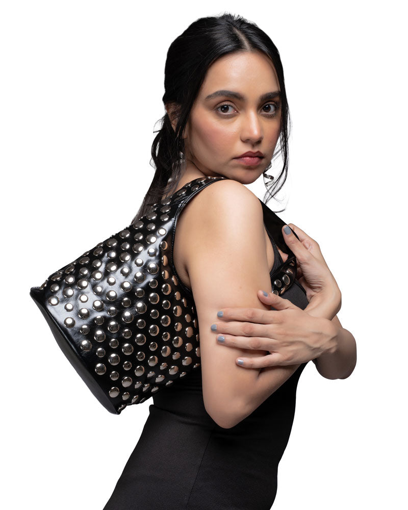 Own your aesthetic with the Gen Z Stud bag, a bold statement piece designed for the modern trendsetter. Covered in striking silver studs on a vibrant red base, this bag perfectly fuses rebellious spirit with undeniable style.