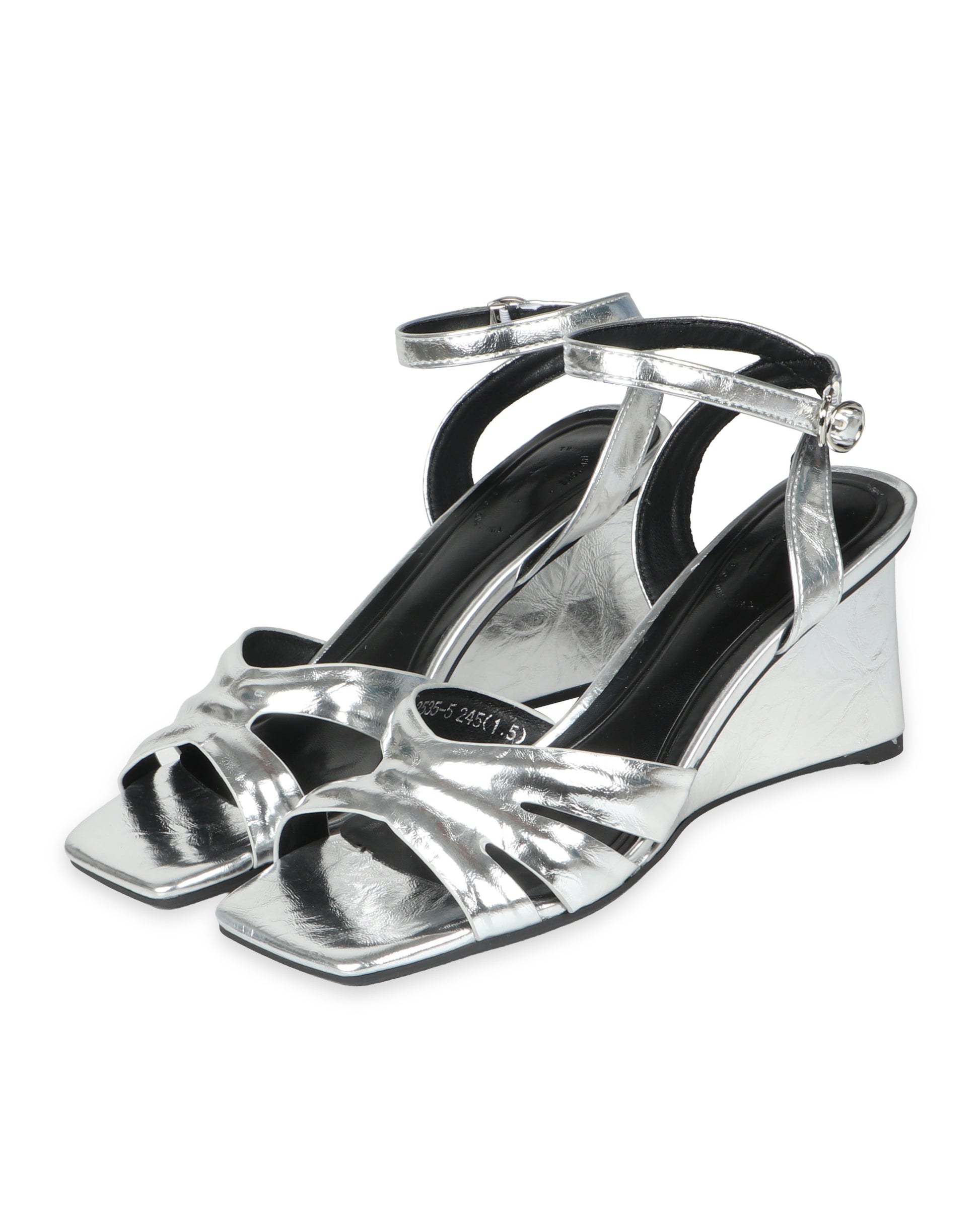Comfortable, sculpted wedges in metallic silver or black for relaxed, elevated style.