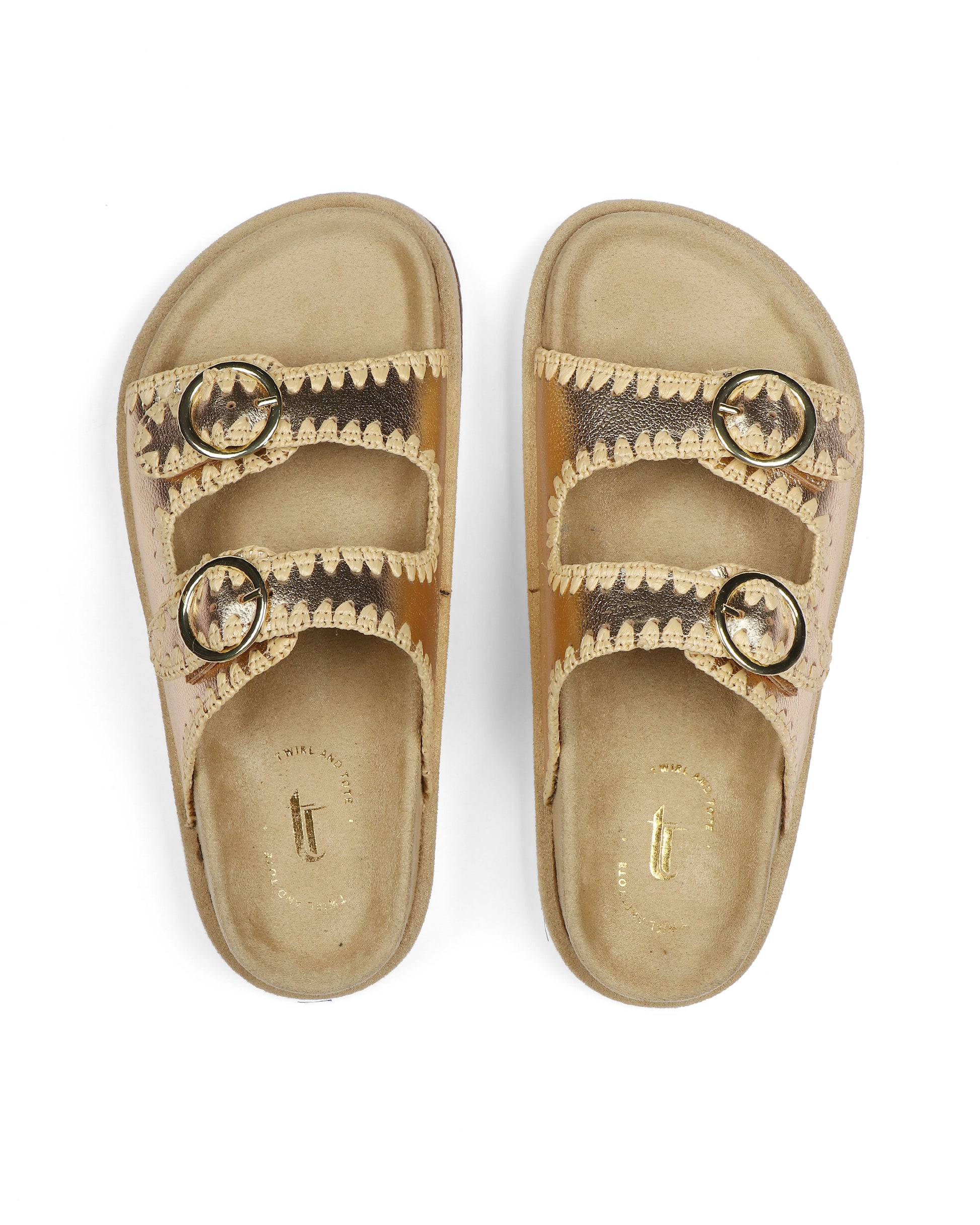 Step into elegance with these opulent gold sandals, where fashion meets function.