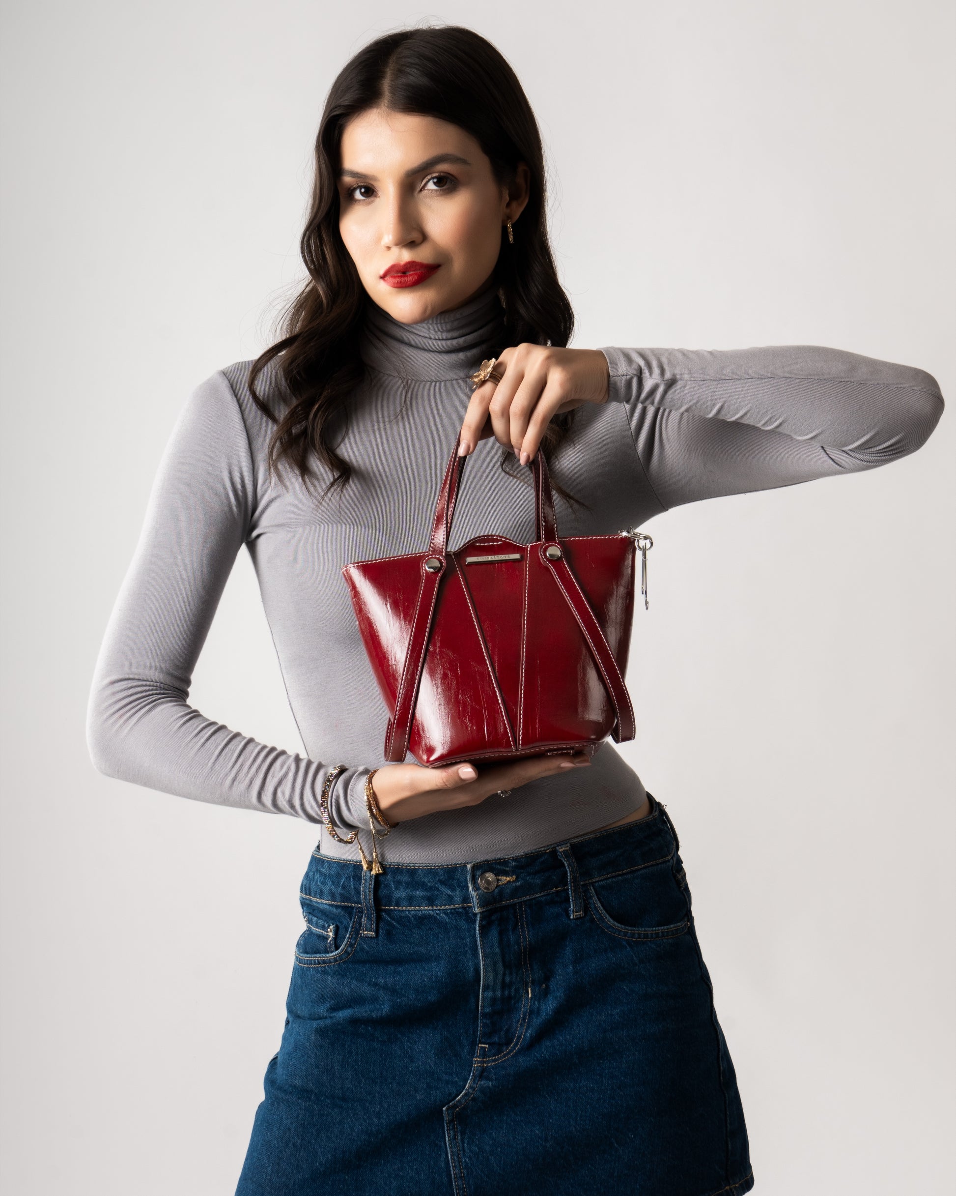 The Red Hot Shine Satchel offers a powerful blend of glamour and versatility, with its deep ruby hue and lustrous finish. The unique chain detailing adds a touch of modern edge, while the spacious design makes it perfect for day or night.