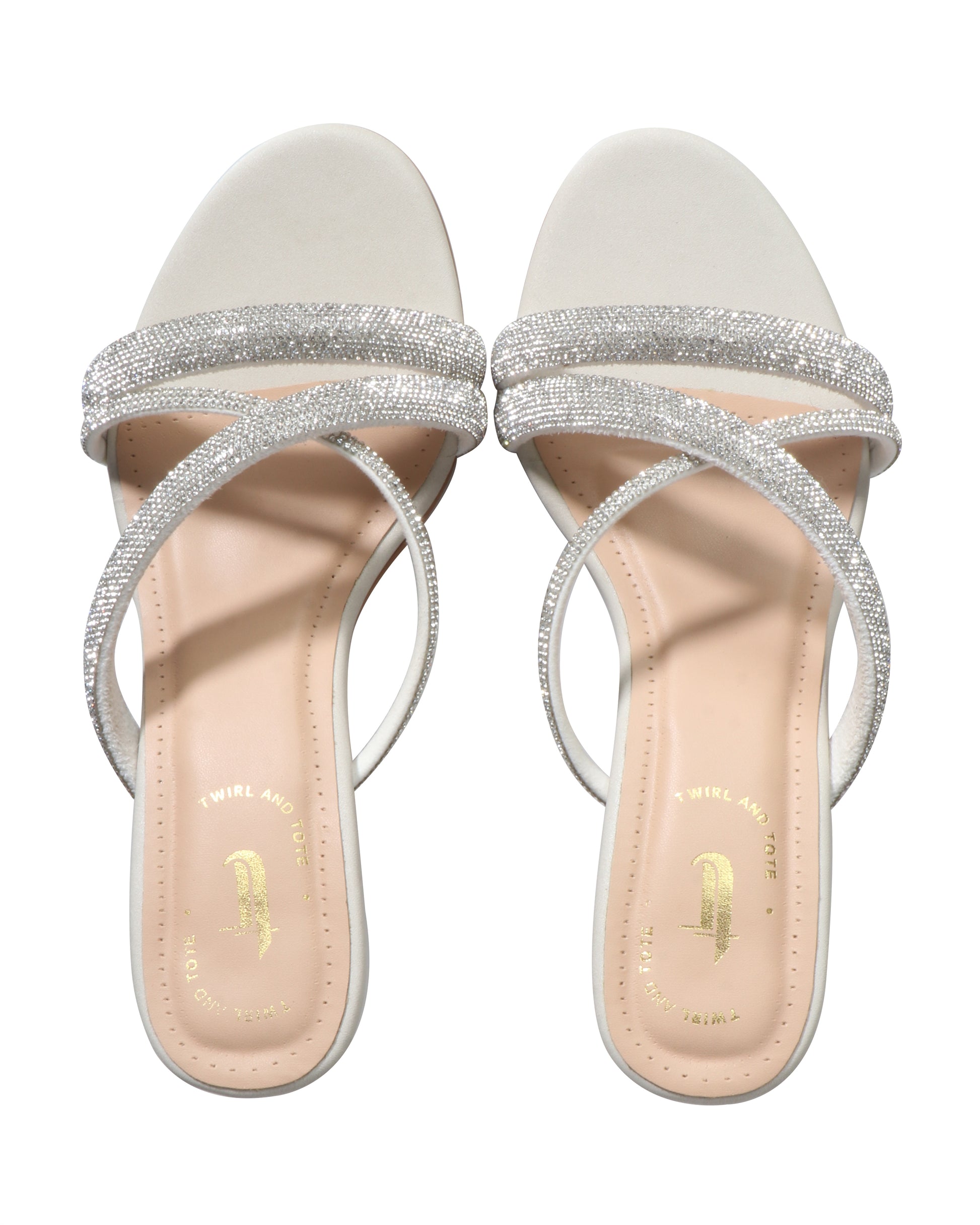 Lightweight shimmer heels crafted for all-night comfort and effortless glam.