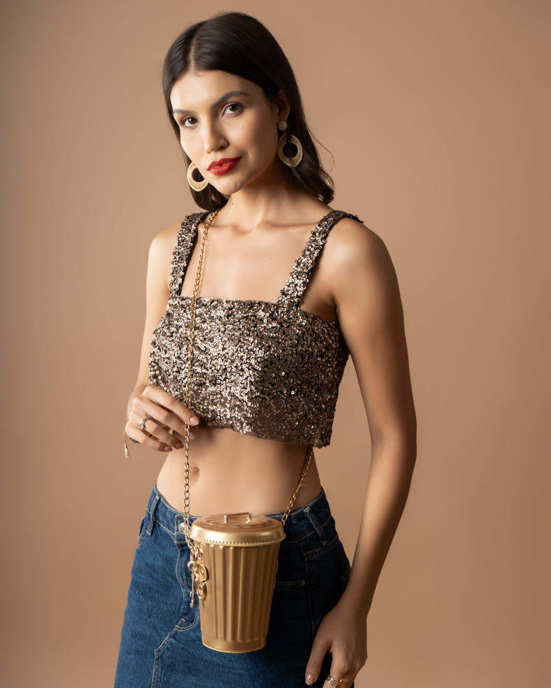 This isn't your ex's old trash; it's the Gold Digger (Bag)! This shimmering, gold-toned purse, shaped like a miniature bin, is worth more than any bad relationship. Carry your essentials in style and show the world you've upgraded to pure gold.
