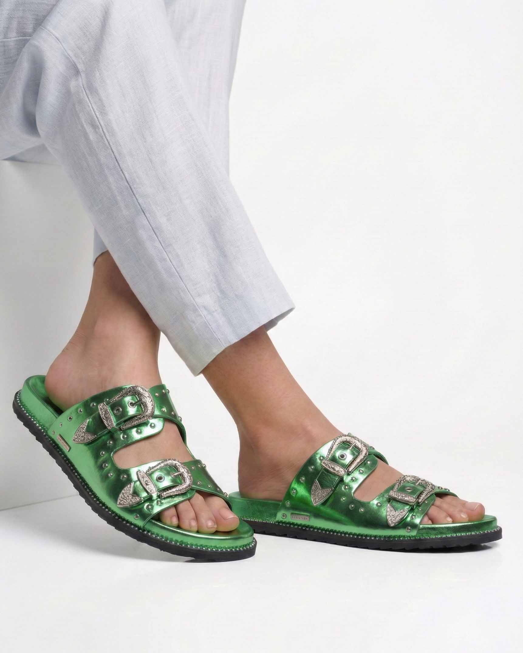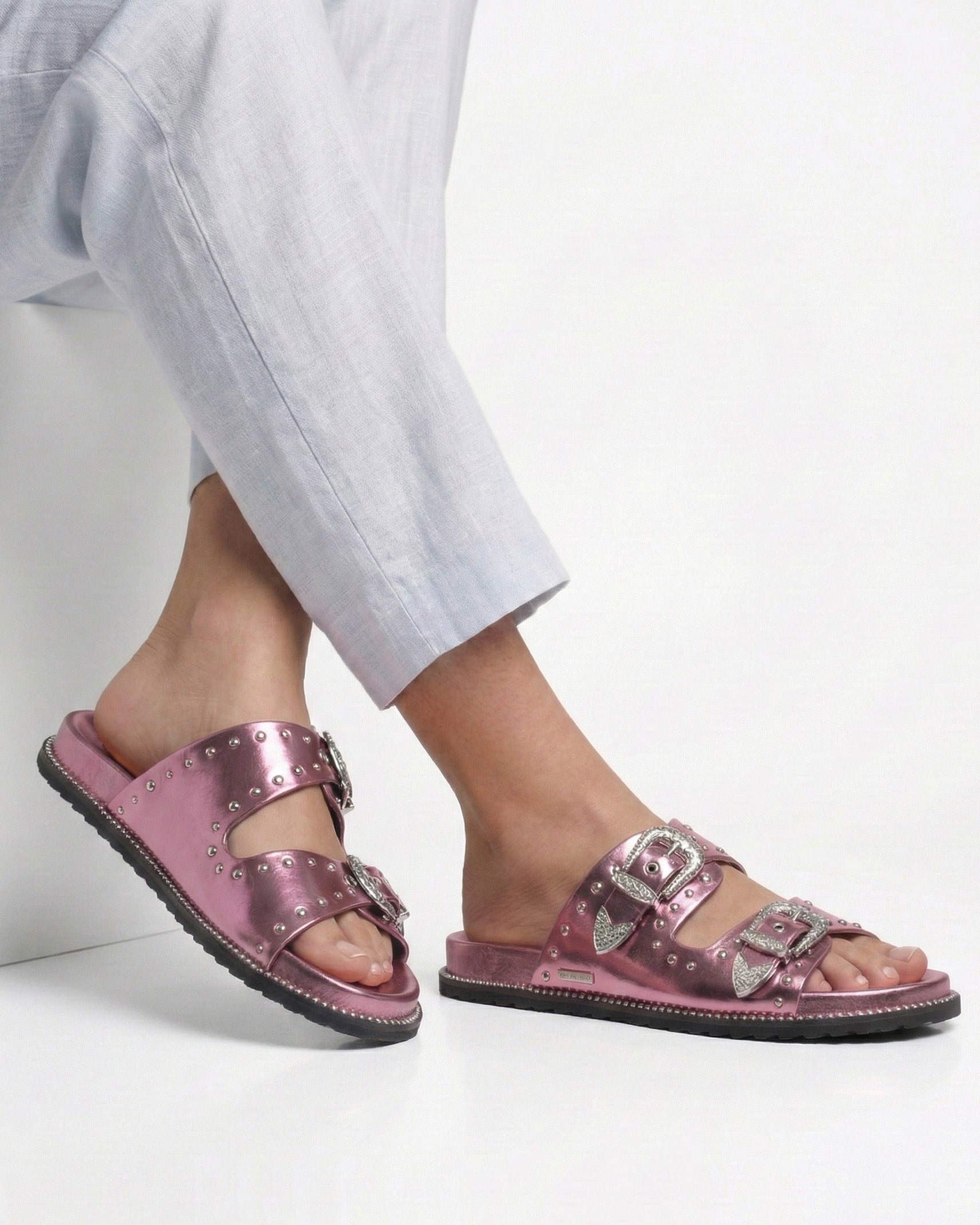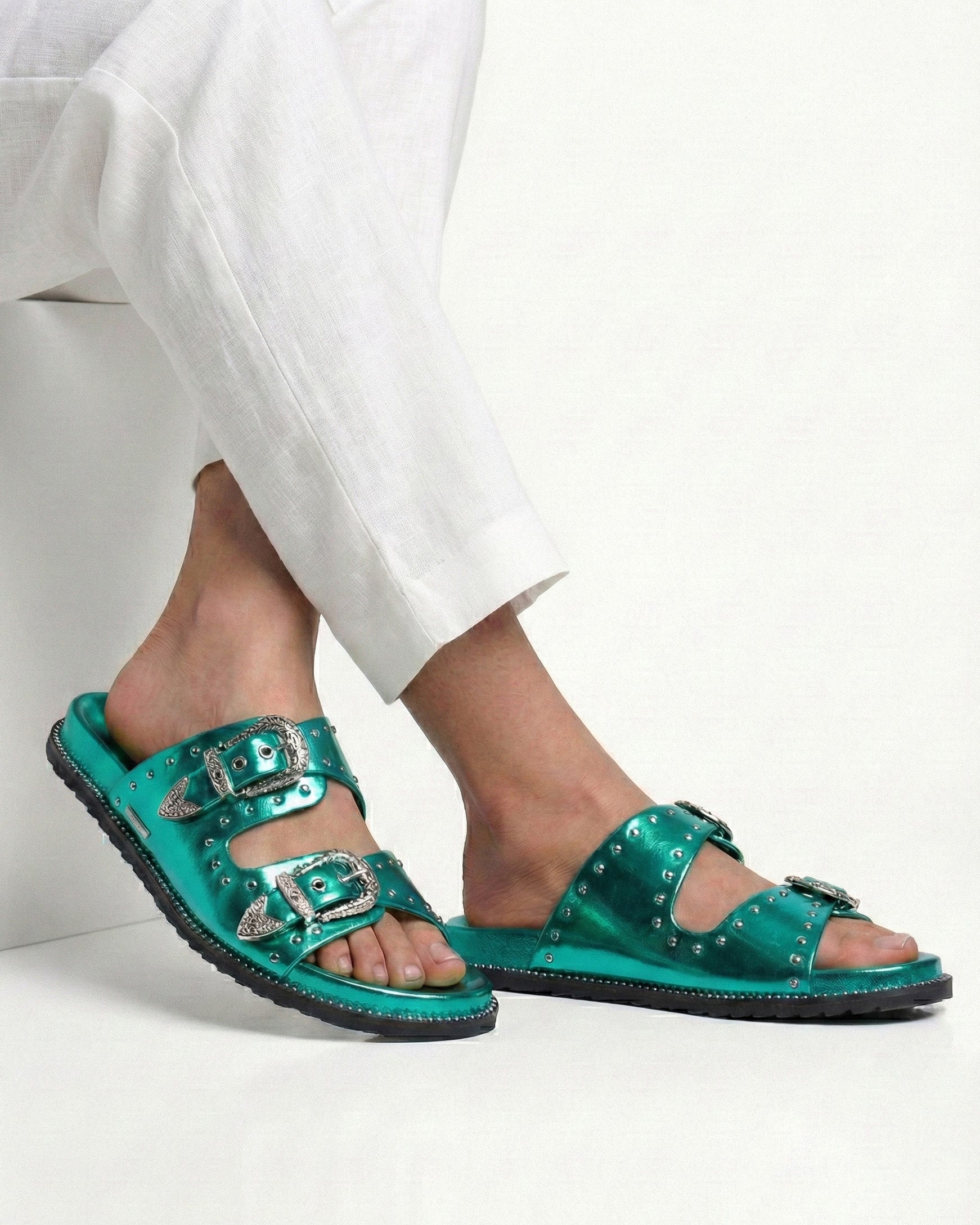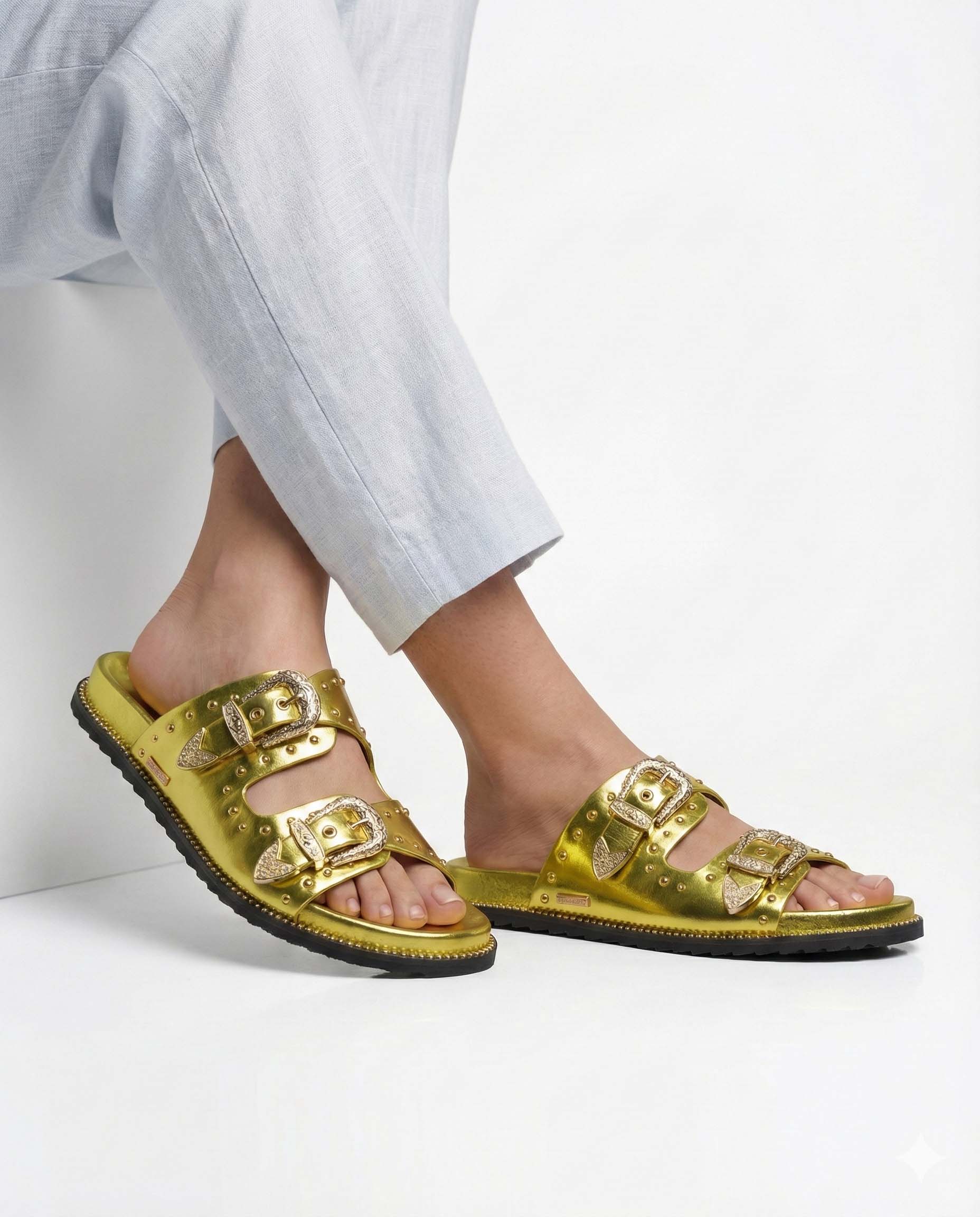 Featuring a trendy design with studded details and stylish buckles, these sliders are perfect for those who want to make a fashion statement. The comfortable sole ensures comfort, while the buckle closure provides a secure fit. Available in a variety of colors to match your personal style.