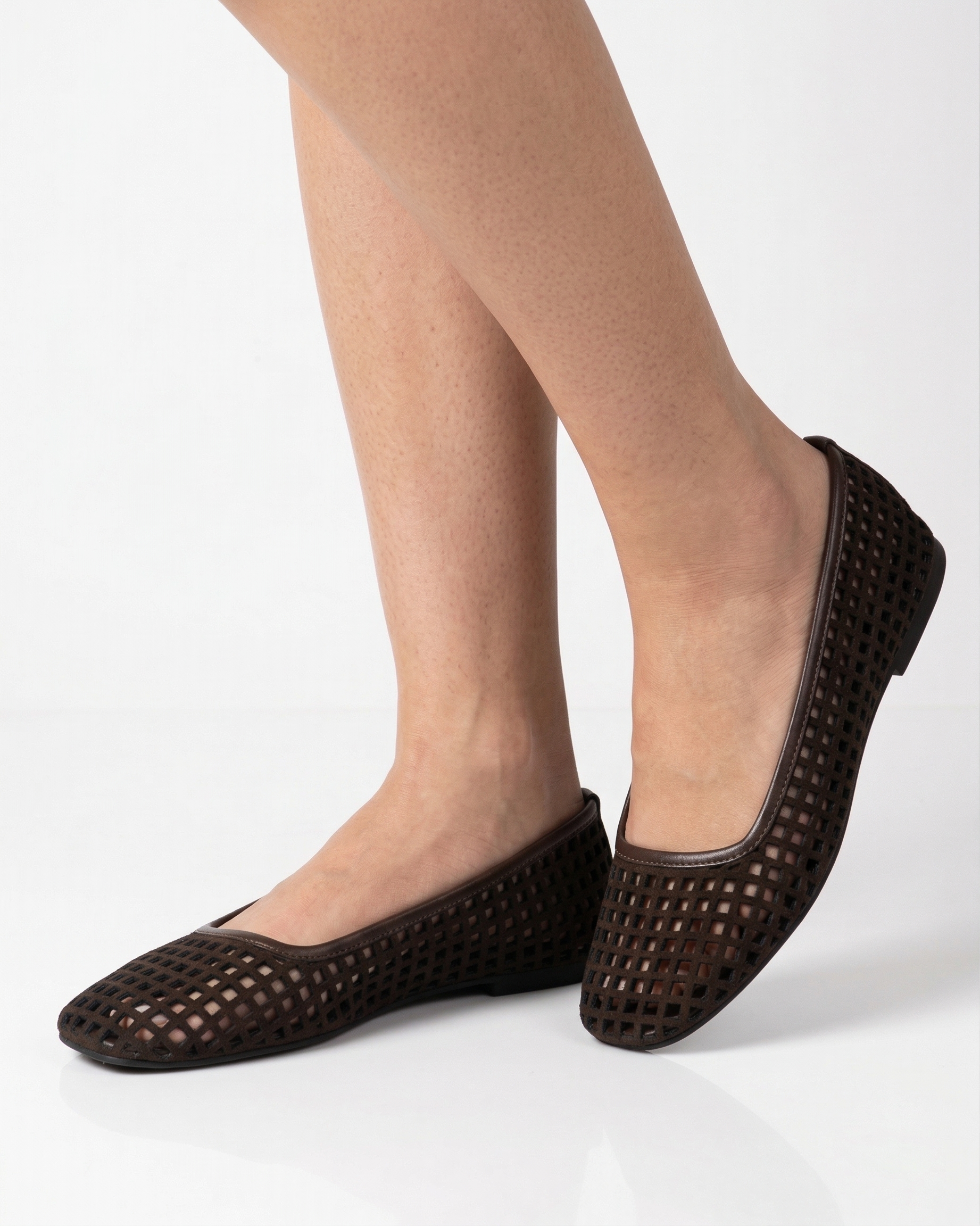 Laser-Cut Lattice: Geometric "waffle" design for a modern, architectural look. Maximum Breathability: Open-grid pattern keeps feet cool and comfortable all day. Deep Espresso Tone: A rich, dark brown hue that acts as a versatile neutral. Sleek Square Toe: Contemporary silhouette that pairs perfectly with any outfit.