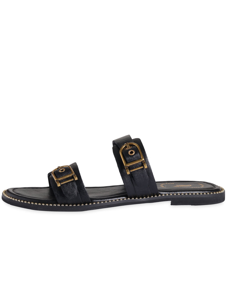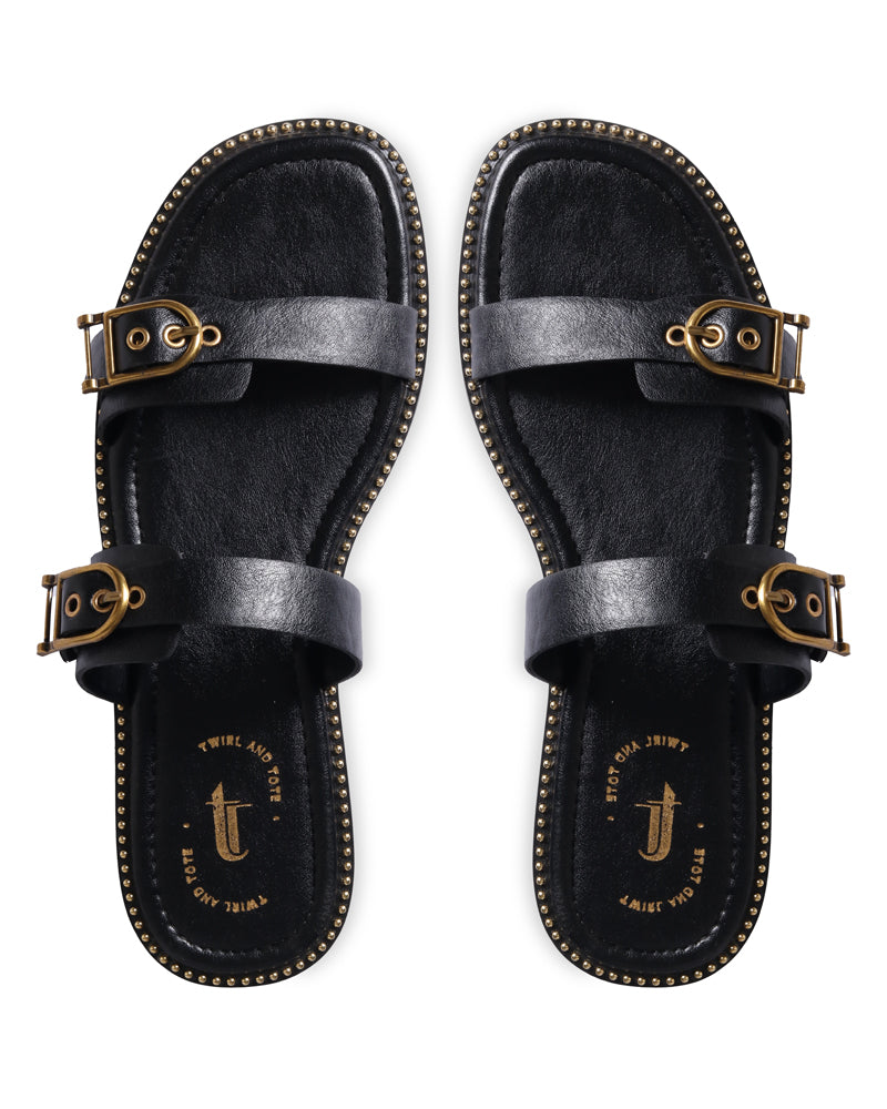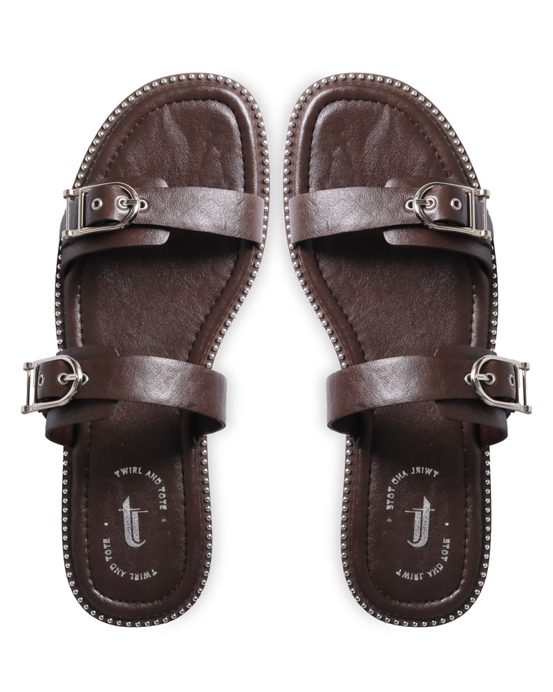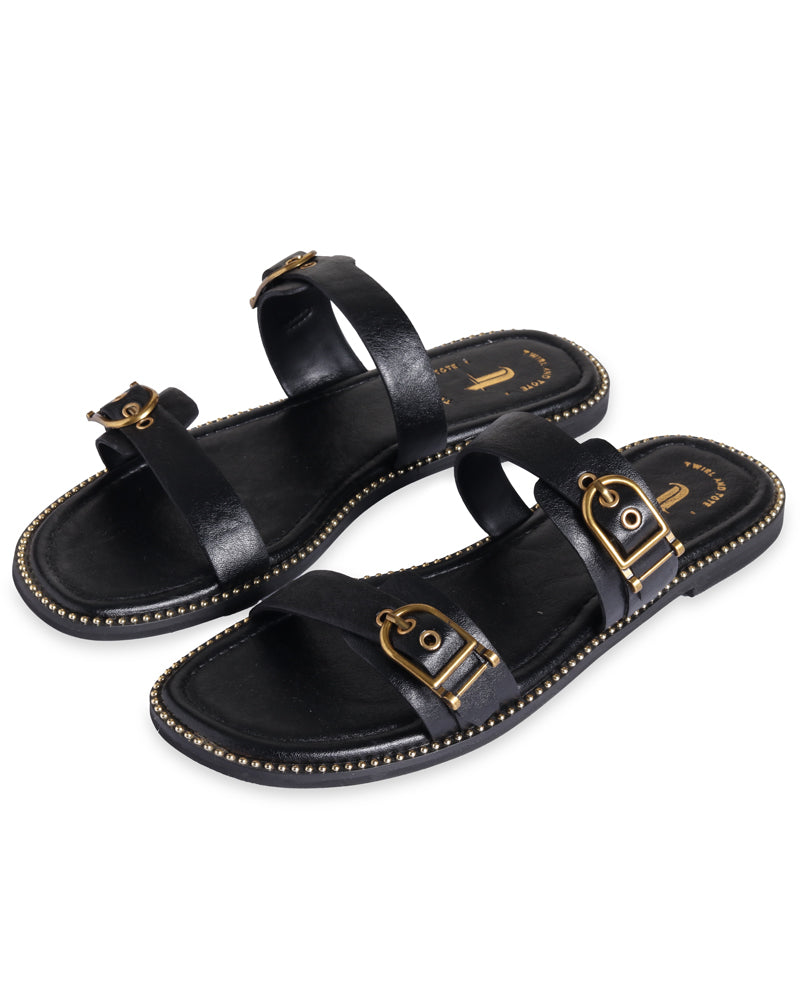 Chic flats with two sturdy straps and a sleek buckle. Comfortable, stylish, and perfect for everyday wear.