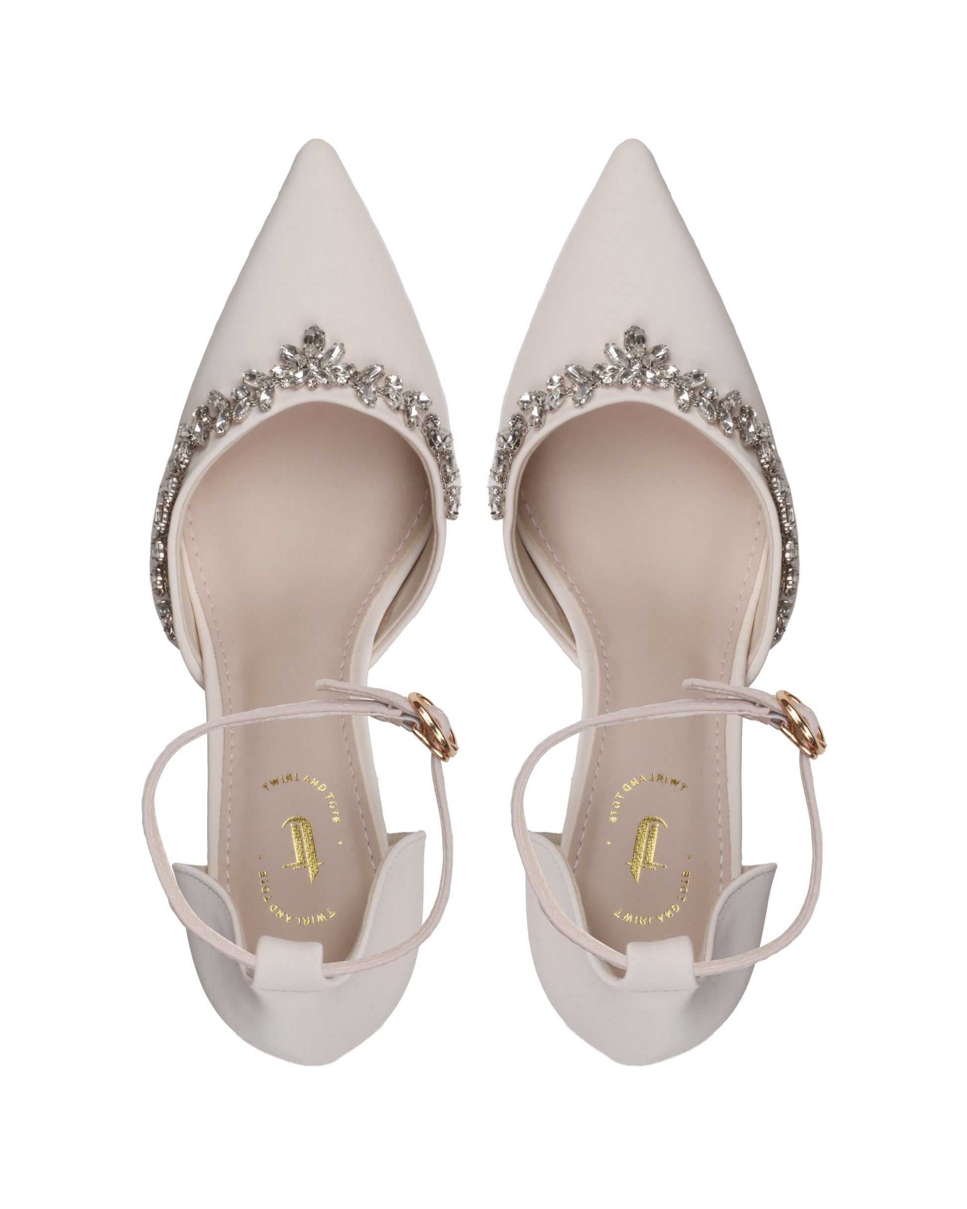 Where elegance meets edge. The GeminateTwilight Crystal Heels feature a sculpted silhouette adorned with hand-set crystal accents, perfectly placed to catch the light. Finished with a secure ankle strap and pointed toe, they’re designed to sparkle.